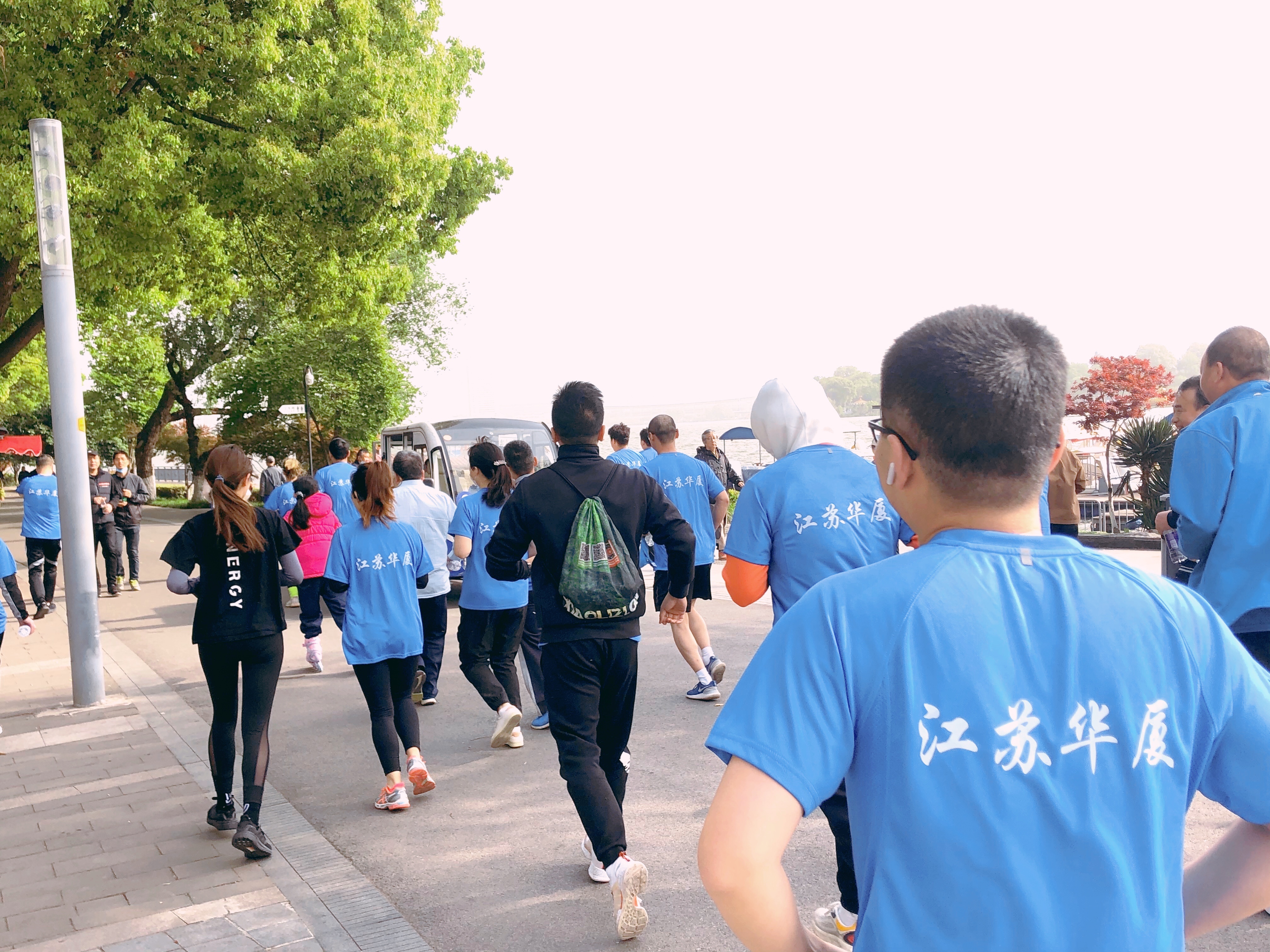 【概要描述】为丰富江苏华厦员工低碳环保的意识和成为健康生活方式的倡导者,4月17日,江苏华厦举办“玄武湖环湖跑”活动。