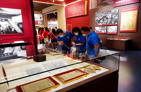 早上9点,全体党员、入党积极分子来到南京渡江胜利纪念馆。集体参观了“人间正道是沧桑”南京历史主题展。